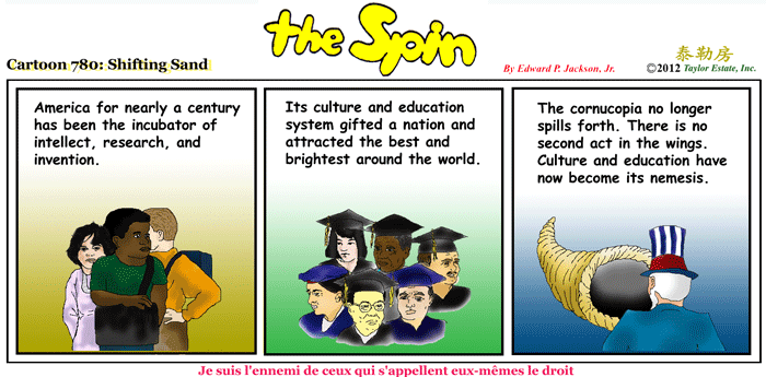 The cornucopia no longer spills forth. There is no Second act in the wings. Culture and education have. Now become its nemesis.